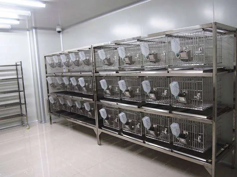 建筑:试验动物房不该受到外环境污染,应有较高的洁净度,并且为密闭、室内墙壁、顶棚、地面应光滑易清洁,不留死角,尽量少开洞。因此,传统做法是在试验室的建设中,其墙面、顶棚均选用防火彩钢板,地面为环氧树脂自流平3㎜厚,接口密封后选用铝合圆角处理。
